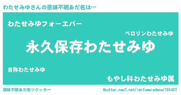| 欧米人風あだ名 | 『アンジェラ・わたせみゆ』 |