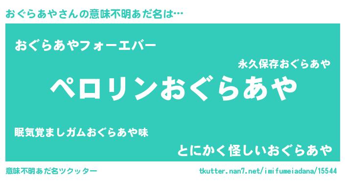 | 女子向けラノベタイトル風あだ名 | 『おぐらあや姫と円卓の騎士』 |