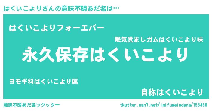 | 欧米人風あだ名 | 『はくいこより・ステッグマイヤー』 |
