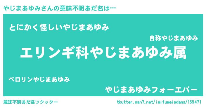 | 欧米人風あだ名 | 『やじまあゆみ・ステッグマイヤー』 |