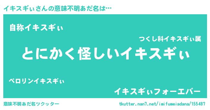 | ポケモン風あだ名 | 『ヒイキスギィ』『イキセウス』 |