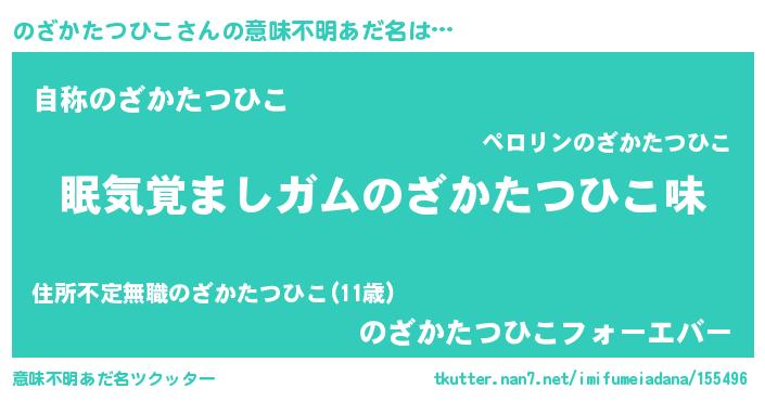 | 男性向けラノベタイトル風あだ名 | 『ノーゲーム・ノーノザカタツヒコ』 |