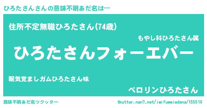 | ファンタジー風あだ名 | 『エターナルヒロタサンー』『ヒロフェル』 |