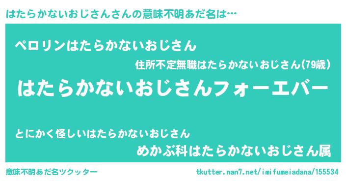 | 胡散臭い通販商品みたいなあだ名 | 『運命の人と巡り会える高級そうな皿…その名も「はたらかないおじさん」』 |