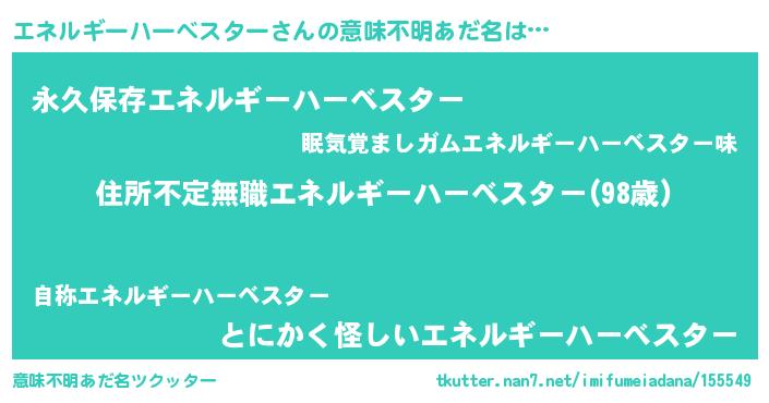 | 男性向けラノベタイトル風あだ名 | 『冴えないエネルギーハーベスターの育てかた』 |