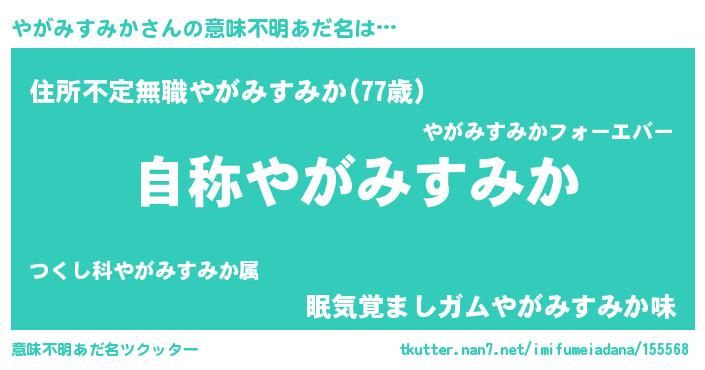 | 欧米人風あだ名 | 『やがみすみか・ステッグマイヤー』 |