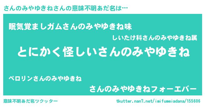 | 胡散臭い通販商品みたいなあだ名 | 『信頼と実績のネックレス…その名も「さんのみやゆきね」』 |