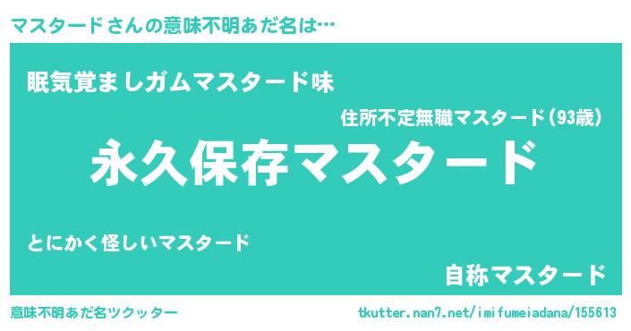 | 男性向けラノベタイトル風あだ名 | 『マスタードに滅ぼされるだけの簡単なお仕事です』 |
