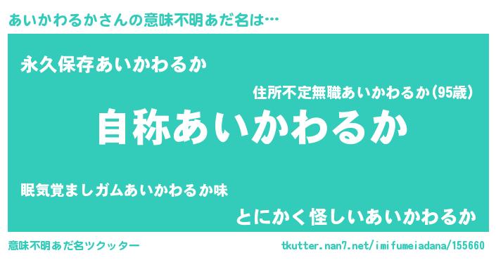 | ヘコむあだ名 | 『あいかわるか(笑)』『あい太郎』 |