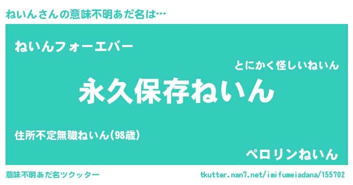 | ヘコむあだ名 | 『ねいん(笑)』『豆乳』『ねいにー』 |