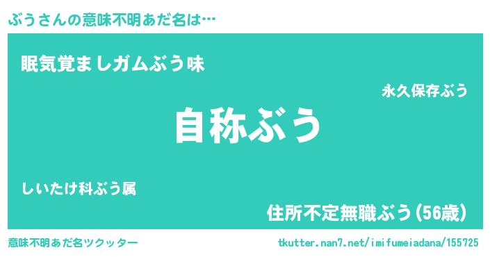 | ヘコむあだ名 | 『ぶう(笑)』『ぶうお』『ぶうにー』 |