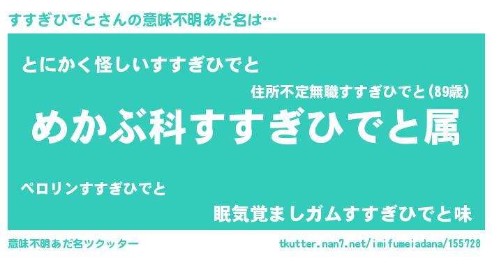 | 男性向けラノベタイトル風あだ名 | 『緋弾のススギヒデト』 |
