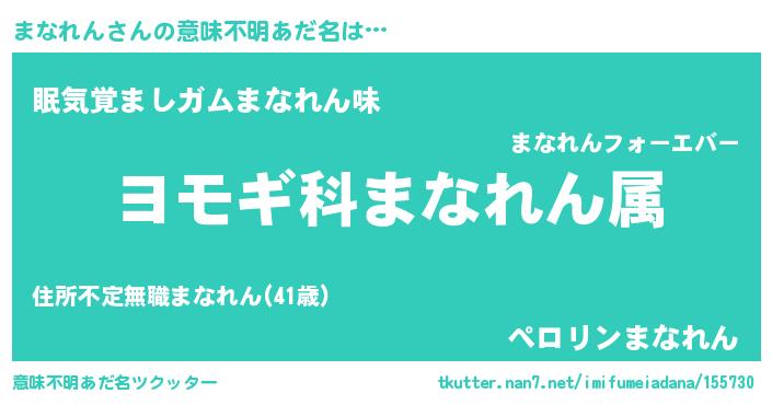 | 欧米人風あだ名 | 『トリンドルまなれん』 |