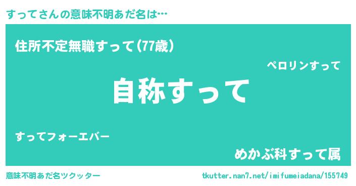 | 男性向けラノベタイトル風あだ名 | 『Re:すってから始める異世界生活』 |