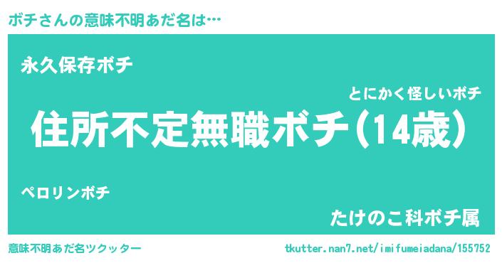 | ヘコむあだ名 | 『ボチ(笑)』『ボチ太郎』『ボチにー』 |