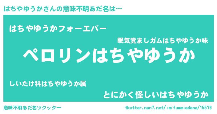 | 男性向けラノベタイトル風あだ名 | 『ハチヤユウカアートオンライン』 |
