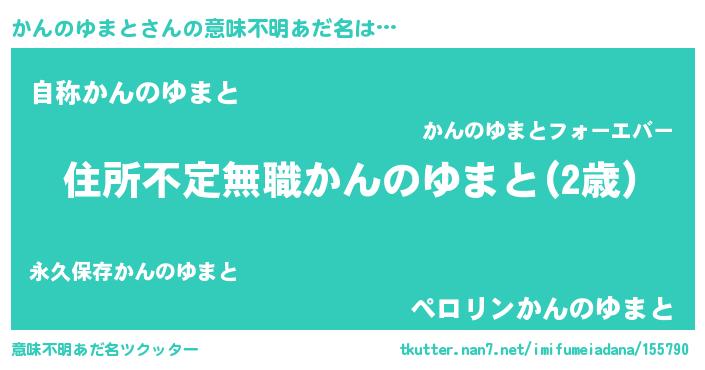 | 男性向けラノベタイトル風あだ名 | 『この素晴らしい世界にかんのゆまとを!』 |