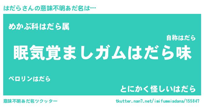 | 欧米人風あだ名 | 『アンジェラ・はだら』『ダニエルはだら』 |