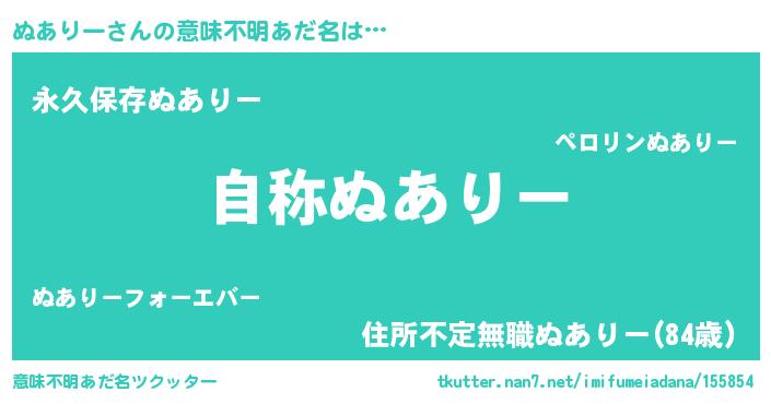 | 男性向けラノベタイトル風あだ名 | 『Re:ぬありーから始める異世界生活』 |