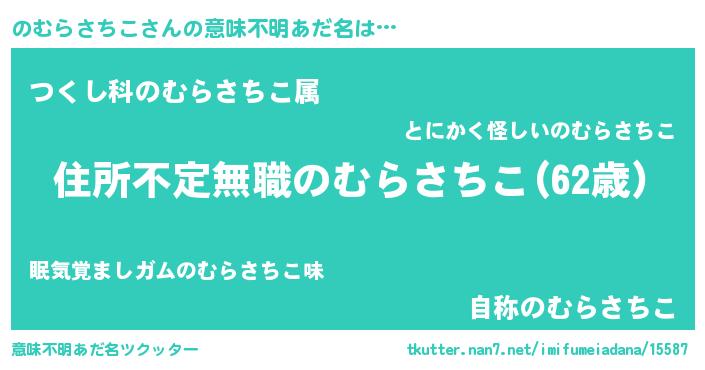 | 男性向けラノベタイトル風あだ名 | 『魔弾の王とのむらさちこ』 |