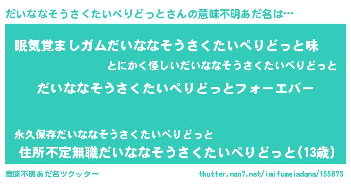 | 肩書あだ名 | 『だいななそうさくたいぺりどっと国家主席』 |