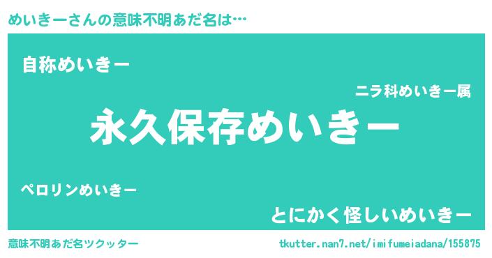 | ヘコむあだ名 | 『めいきー(苦笑)』『めいっちょ』 |