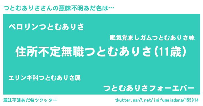 | 男性向けラノベタイトル風あだ名 | 『この素晴らしい世界につとむありさを!』 |