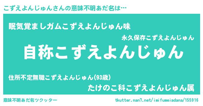 | ヘコむあだ名 | 『こずえよんじゅん(小並感)』『なまこ酢』 |