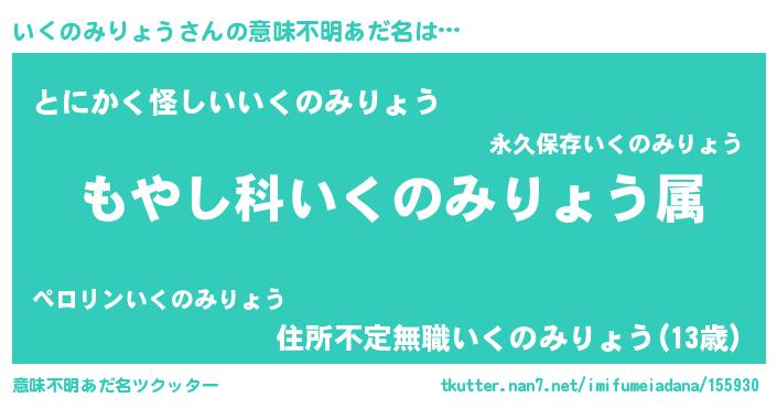 | 男性向けラノベタイトル風あだ名 | 『転生したらいくのみりょうだった件』 |