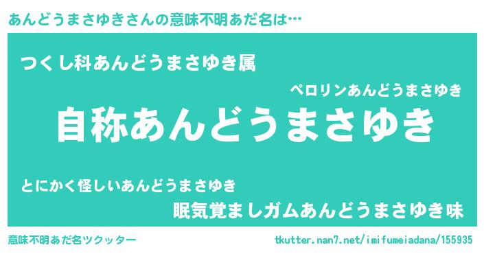 | 肩書あだ名 | 『あんどうまさゆき閣下』 |