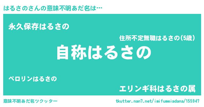 | ヘコむあだ名 | 『はるさの(笑)』『はるっふぃ~』 |
