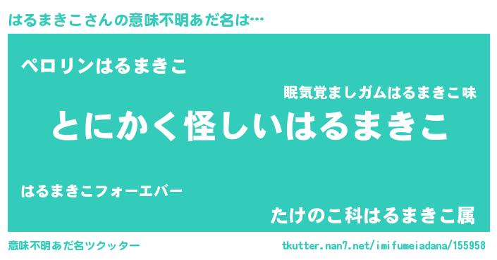 | ポケモン風あだ名 | 『ヒハルマキコ』『ハルチュウ』 |