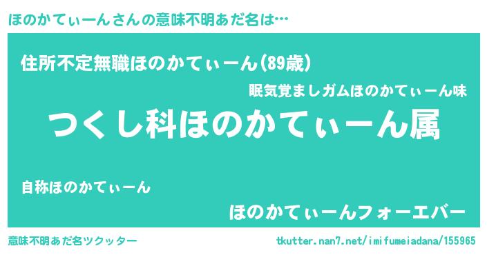 | 男性向けラノベタイトル風あだ名 | 『ほのかてぃーんに滅ぼされるだけの簡単なお仕事です』 |