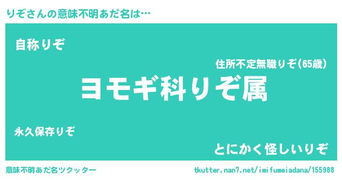 | ヘコむあだ名 | 『りぞ太郎』『りぞ(遠い目)』『豆乳』 |