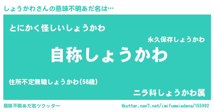 | ポケモン風あだ名 | 『ショセウス』『ヒショウカワ』 |