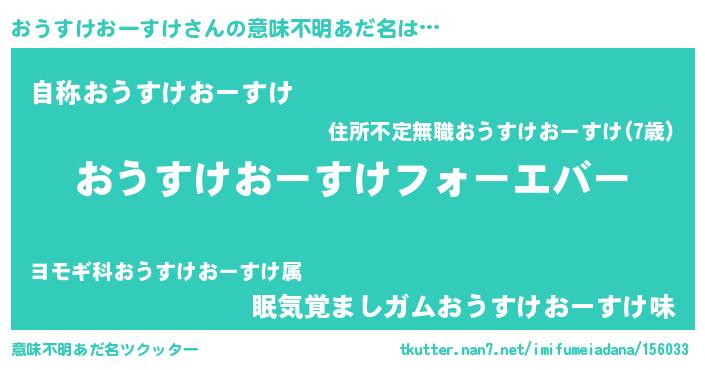 | 欧米人風あだ名 | 『おうすけおーすけ・ステッグマイヤー』 |