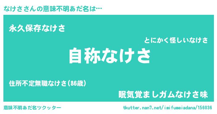 | 女子向けラノベタイトル風あだ名 | 『なけさなんてお断りですっ。』 |