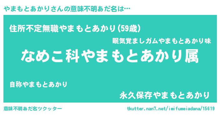 | 男性向けラノベタイトル風あだ名 | 『転生したらやまもとあかりだった件』 |