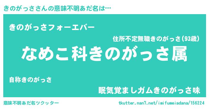 | 男性向けラノベタイトル風あだ名 | 『転生したらきのがっさだった件』 |