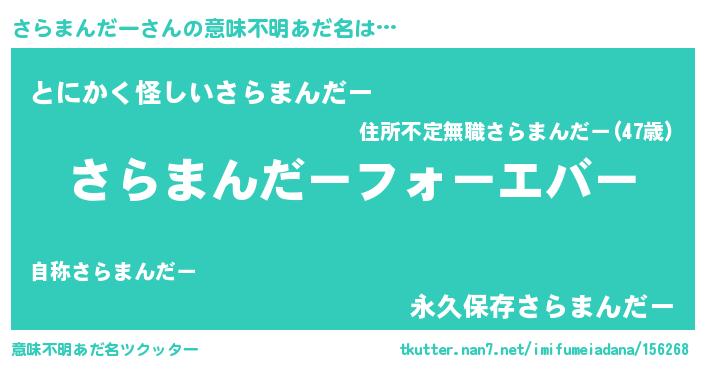 | 女子向けラノベタイトル風あだ名 | 『さらまんだーの婚約者』 |
