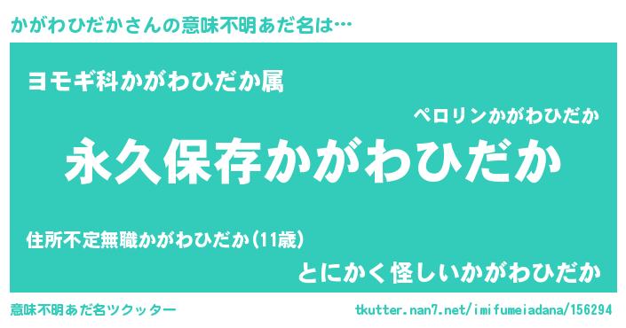 | ヘコむあだ名 | 『かがわひだか(笑)』『かがっぺ』 |
