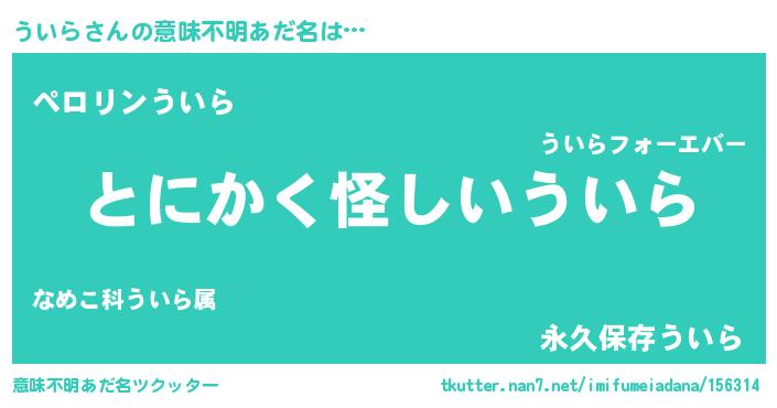 | 恥ずかしいあだ名 | 『ウイリンリン』『プリティーういら』 |
