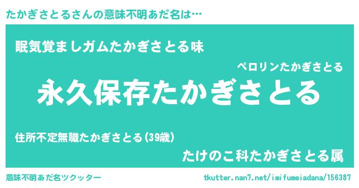 | 伝説のあだ名 | 『古より伝わる暗殺者たかぎさとる』 |
