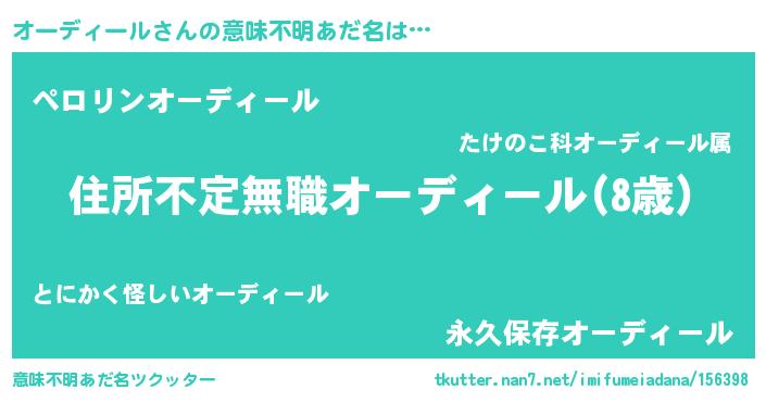 | 男性向けラノベタイトル風あだ名 | 『この素晴らしい世界にオーディールを!』 |