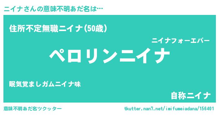 | 男性向けラノベタイトル風あだ名 | 『うちのニイナが世界を掌握している!』 |