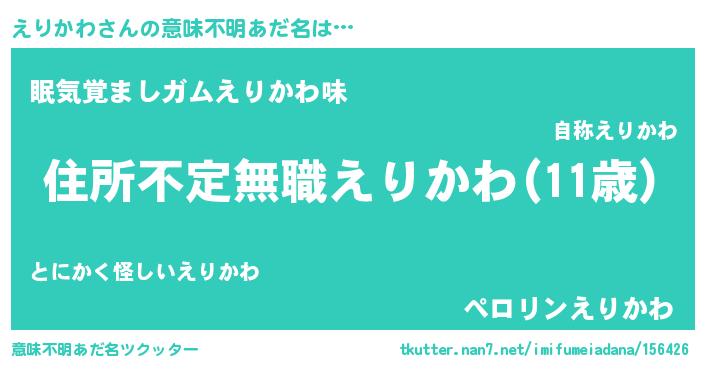 | 男性向けラノベタイトル風あだ名 | 『えりかわに滅ぼされるだけの簡単なお仕事です』 |