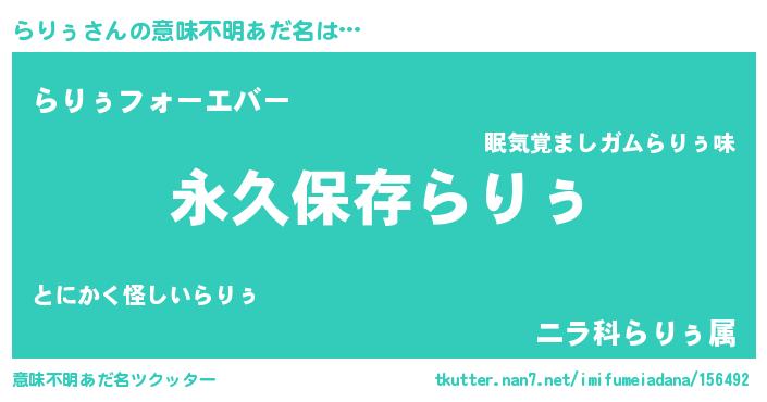 | 胡散臭い通販商品みたいなあだ名 | 『来世でも幸せになれる健康食品…その名も「らりぅ」』 |