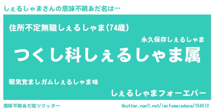 | 胡散臭い通販商品みたいなあだ名 | 『あなたにだけ特別に提供する世界で10本だけ現存している希少なブランデー…その名も「しぇるしゃま」』 |