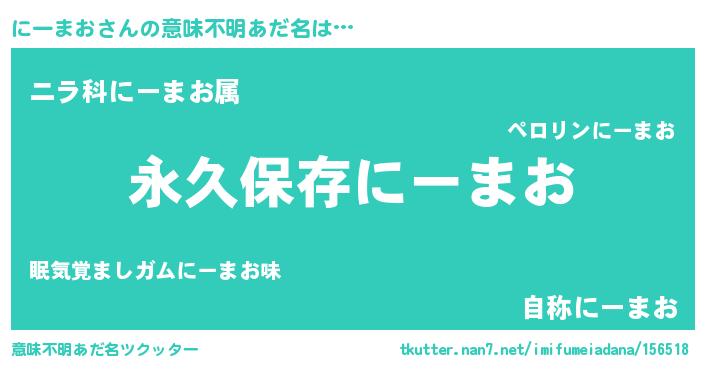 | ヘコむあだ名 | 『にーまお(笑)』『にーにゅー』 |