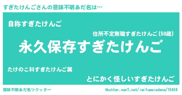 | 男性向けラノベタイトル風あだ名 | 『すぎたけんごという概念が存在しない退屈な世界 』 |